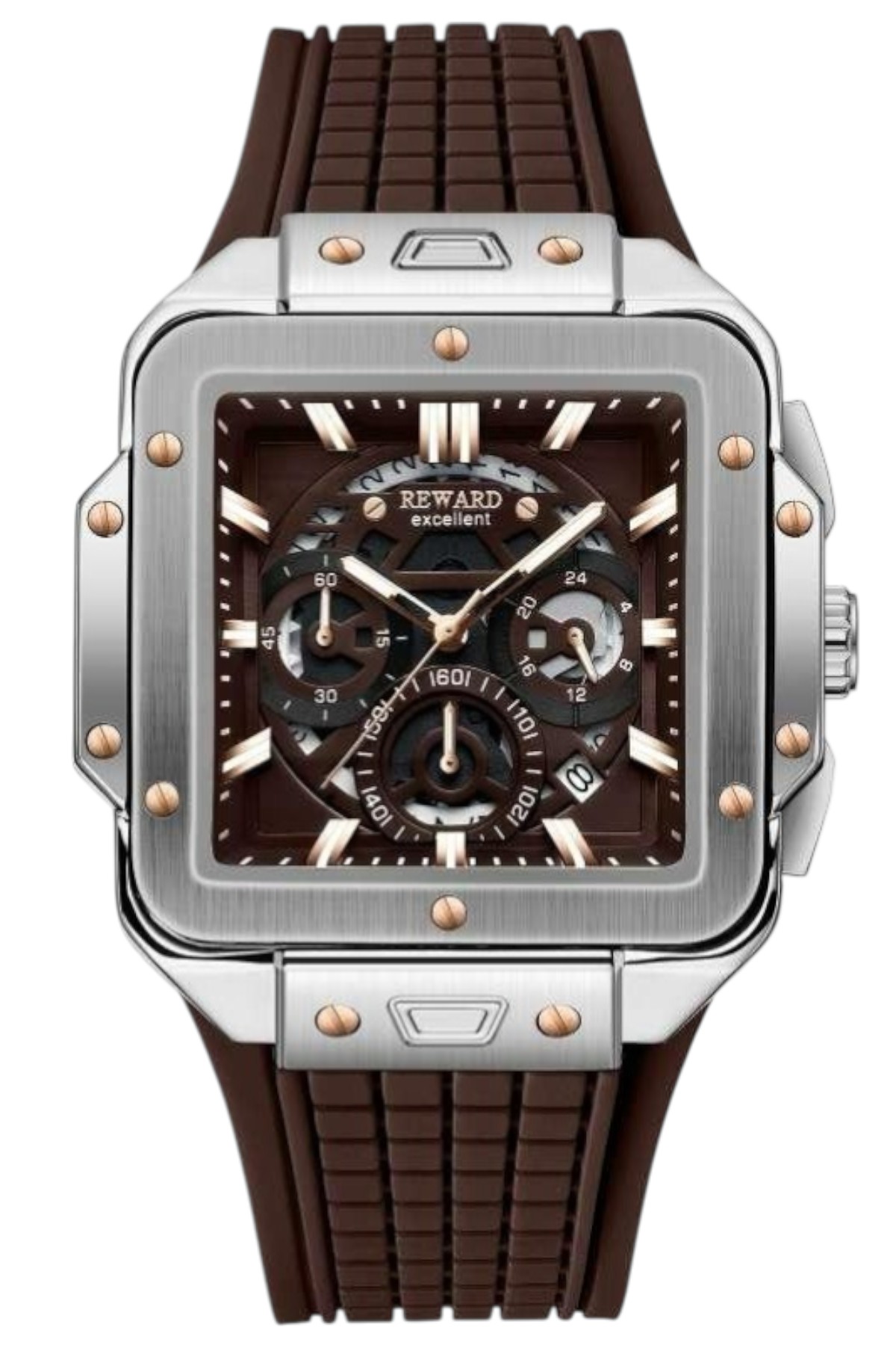 Erkek Kol Saati Quartz Takvimli Kahverengi Kadran Silikon Kordon Kahverengi 48 mm A146884
