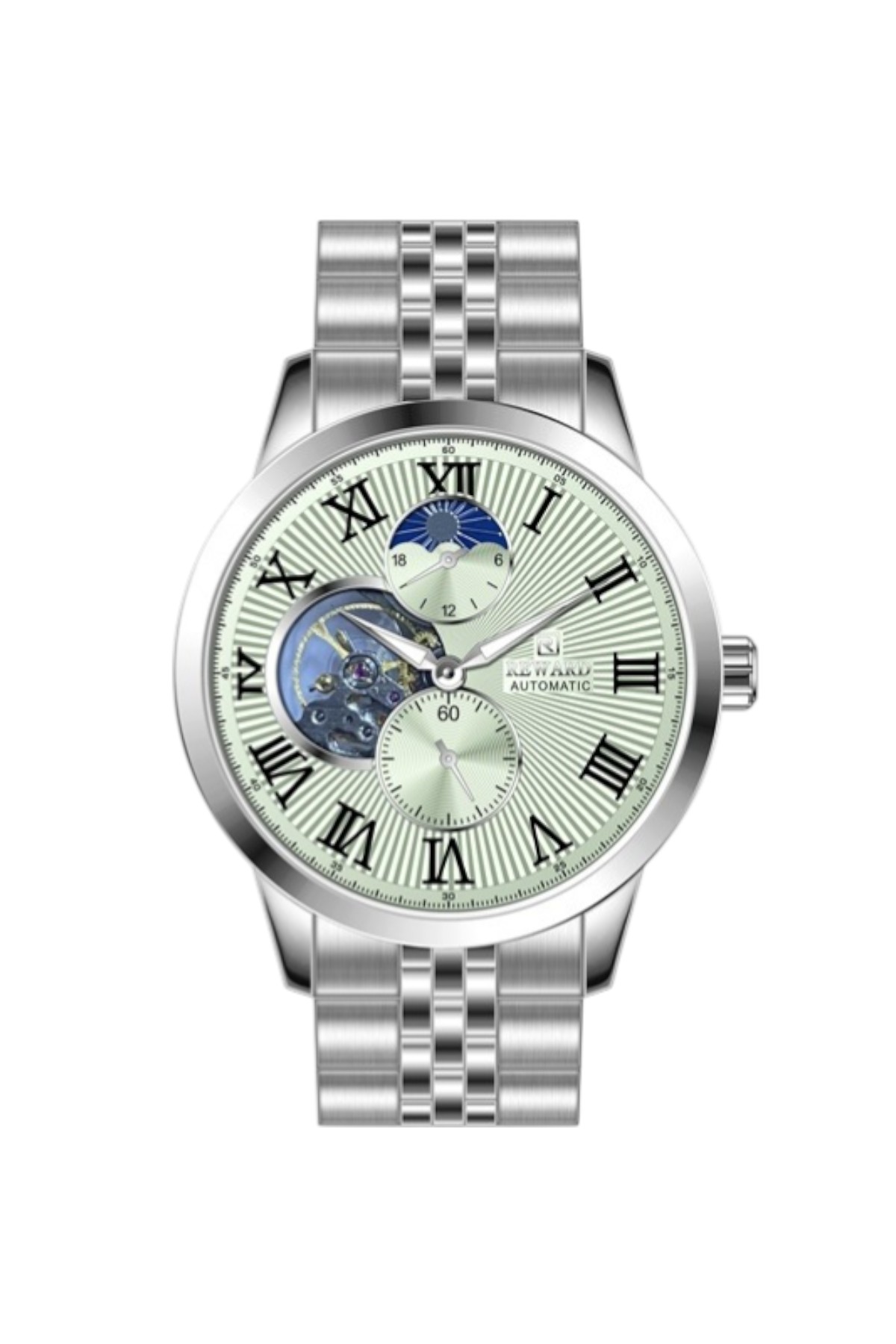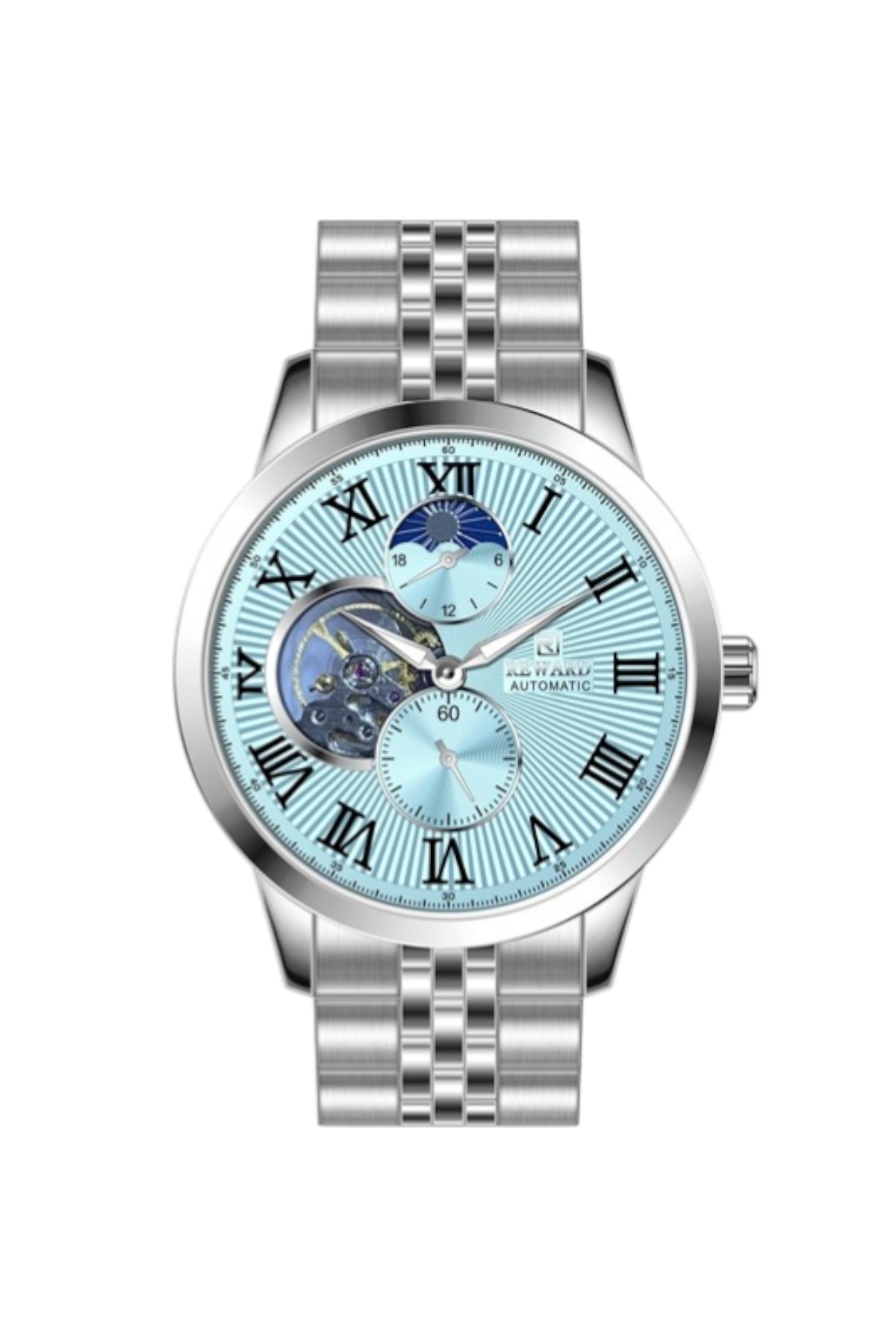 Reward erkek kol saati; günlük kullanımda şıklık ve konforu bir araya getirir.; Ürün Özellikleri: – Mekanizma: Otomatik – Kasa Materyali: Çelik (Gümüş-Rose Gold) – Kordon Materyali: Çelik (Gümüş-Pembe) – Kadran Rengi: Lacivert – Kasa Çapı: 45 mm – Takvim: Yok