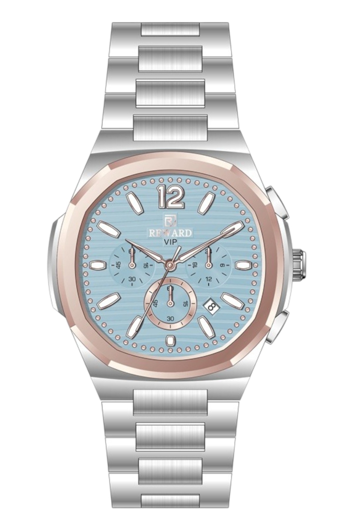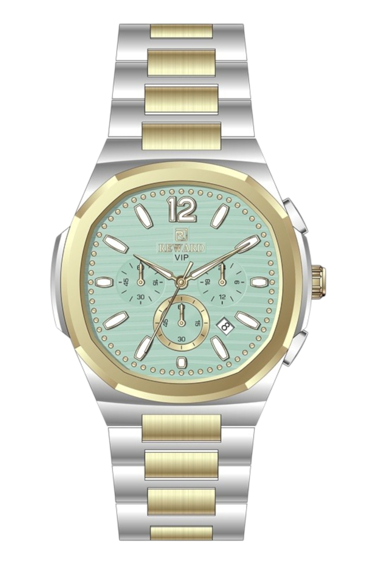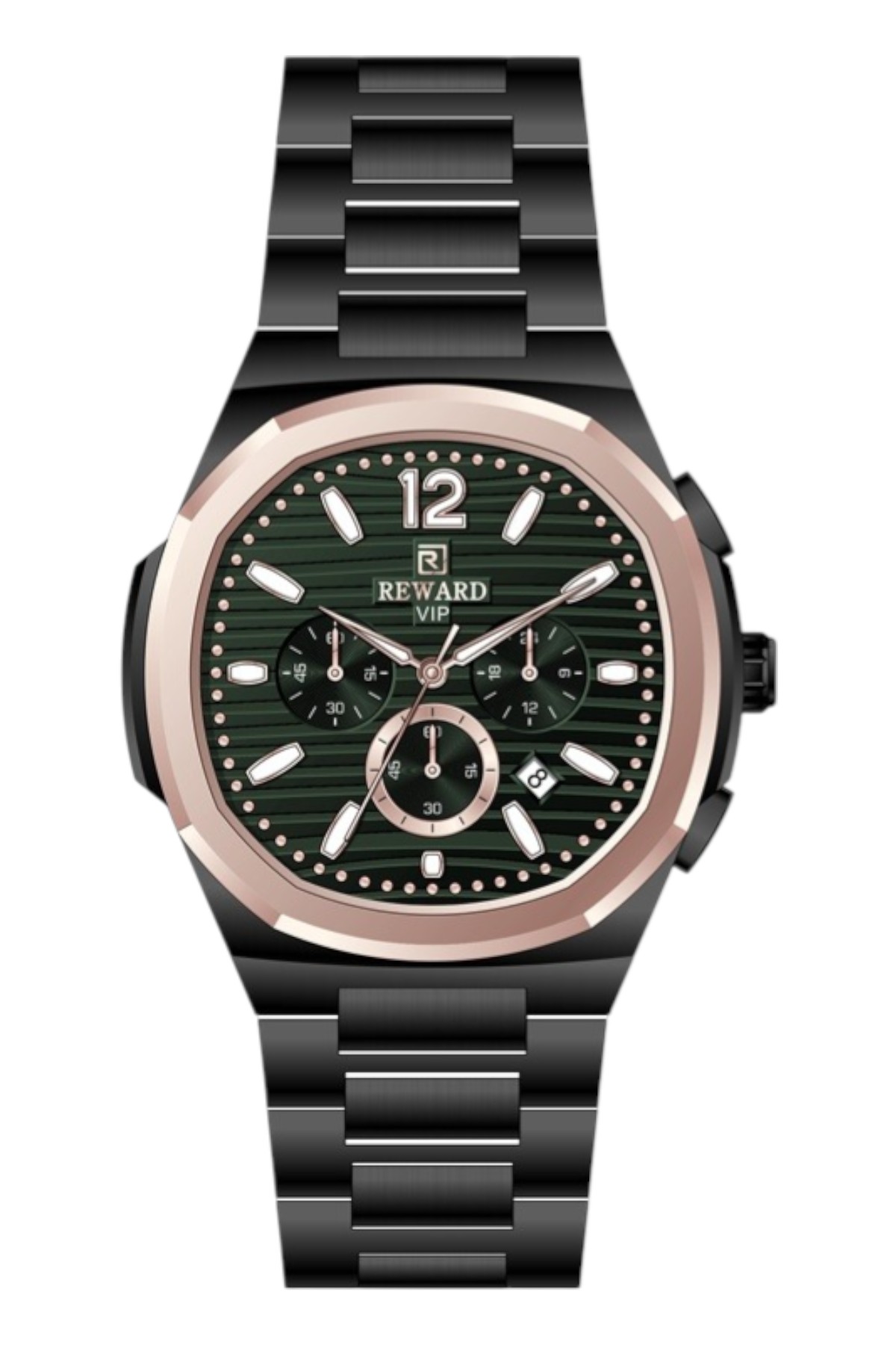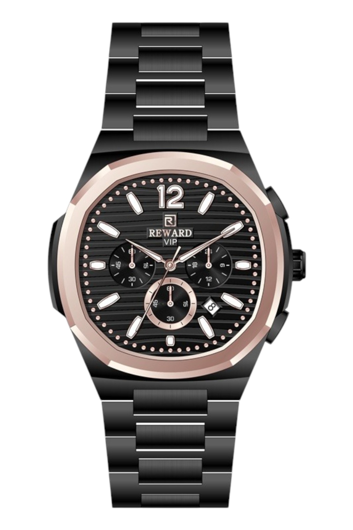 Reward erkek kol saati; günlük kullanımda şıklık ve konforu bir araya getirir.; Ürün Özellikleri: – Mekanizma: Quartz – Kasa Materyali: Çelik (Altın-Füme) – Kordon Materyali: Çelik (Füme) – Kadran Rengi: Sarı – Kasa Çapı: 46 mm – Takvim: Var