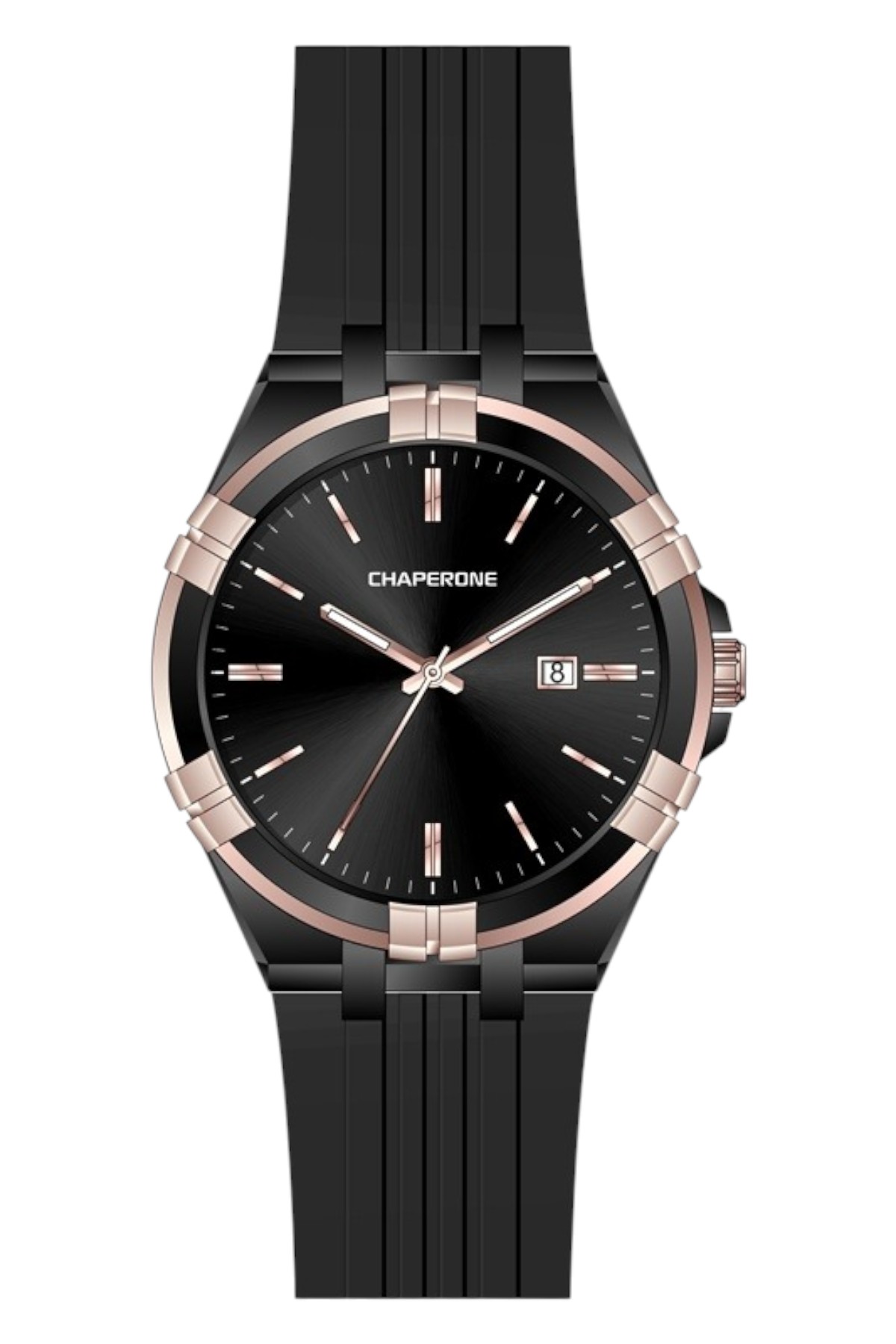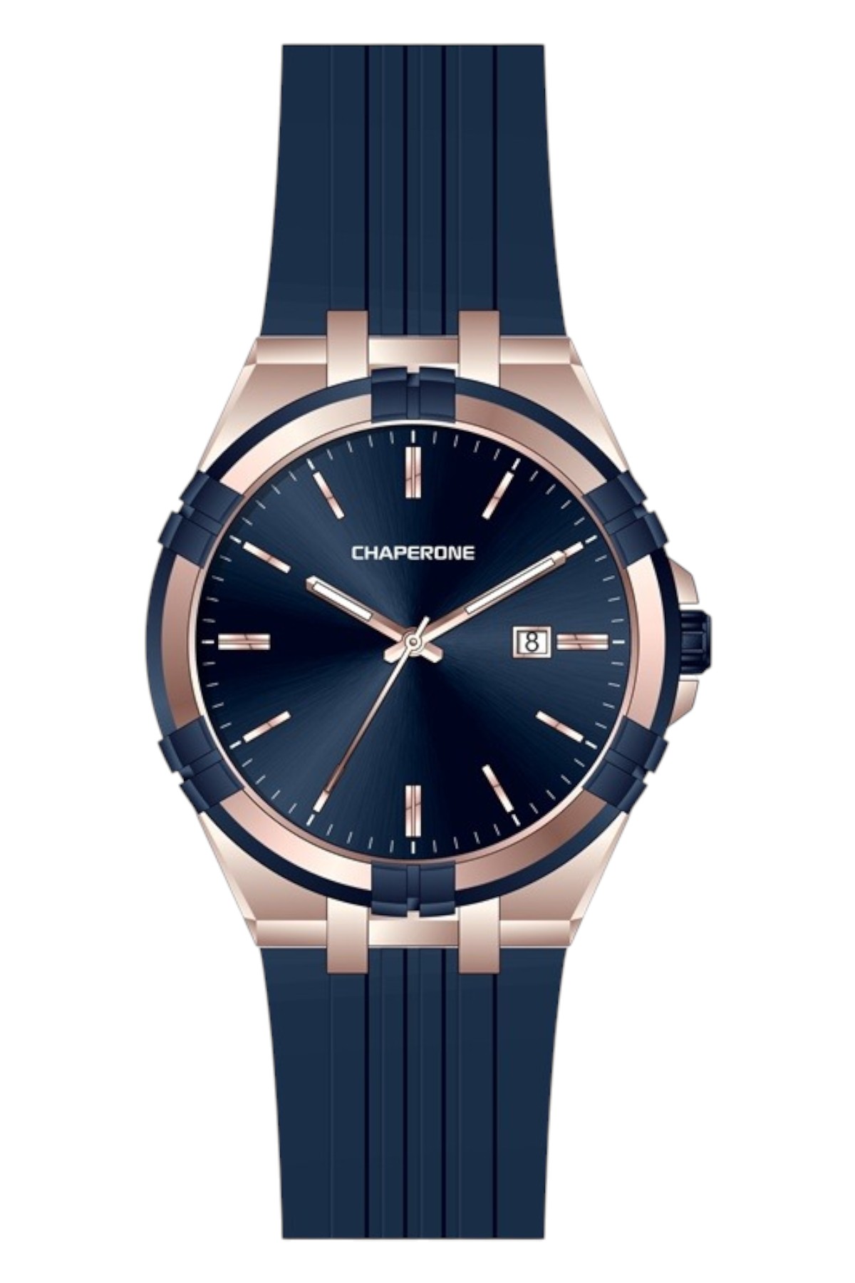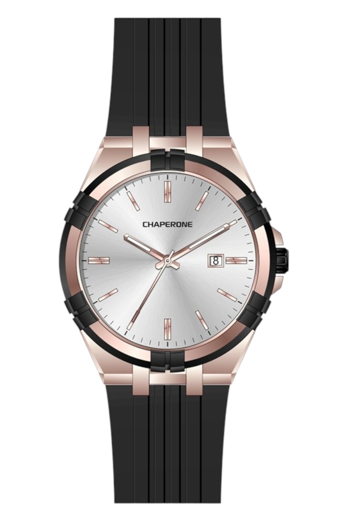 Chaperone erkek kol saati; günlük kullanım için tasarlanmış, zamansız bir modeldir.; Öne Çıkan Özellikler: – Mekanizma: Quartz – Kasa çapı: 43 mm – Kasa kalınlığı: 11 mm – Kasa materyali: Çelik – Kordon materyali: Silikon – Kadran rengi: Yeşil – Kasa rengi: İki Renk – Kordon rengi: Yeşil – Takvim: Var Hediyelik olarak tercih edilebilir.; Ürün Kodu: C001395